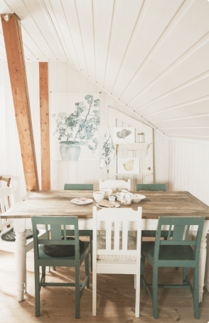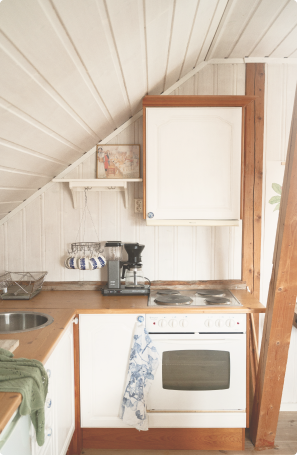 I 2 etg finner du fullt utstyrt kjøkken med spisebord og et allrom med sofa og lenestol. Det er WI-fi og TV i stabburet. Rett utenfor finner du en hyggelig uteplass for måltider eller en kopp te om kvelden.